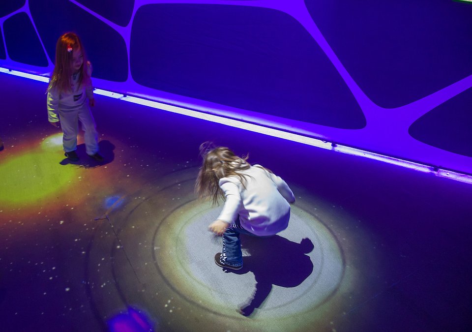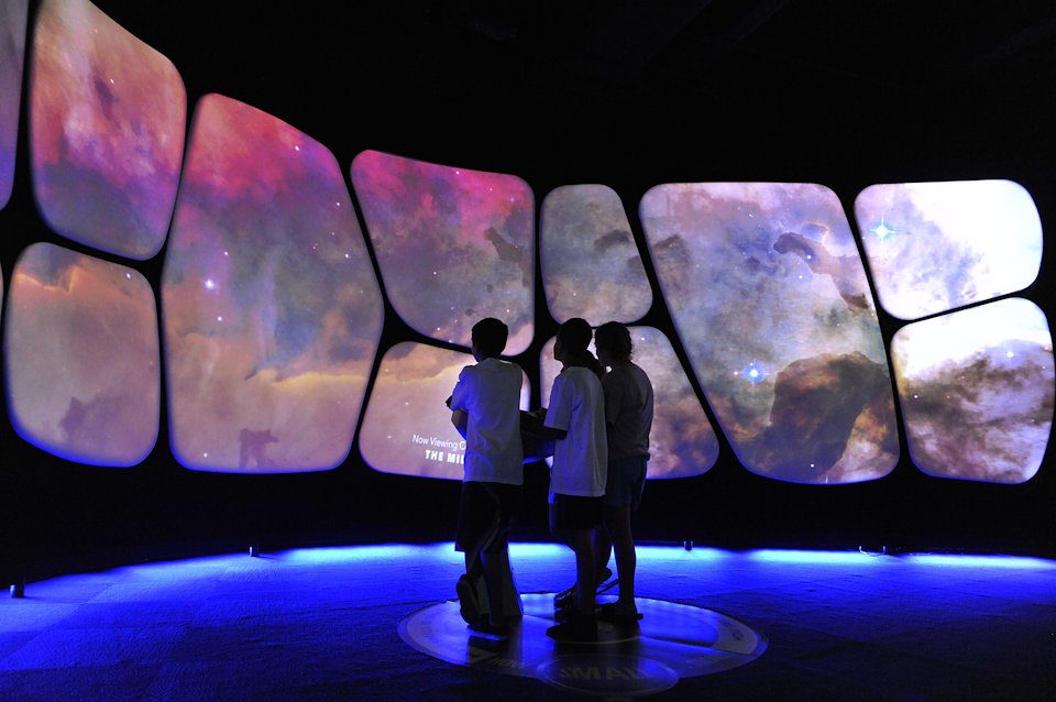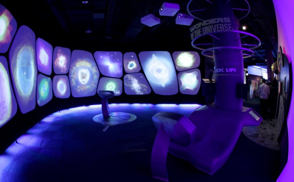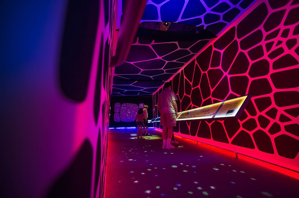 An immersive, interactive gallery that plays with color, scale and forced perspective to give visitors a sense of awe and wonder. The first half of the gallery embraces questions — allowing visitors to play and observe. The second half of the exhibition then breaks down the methods scientists have used to explore cosmology with digital interactives that invite hands-on experimentation. Finally, the exhibition concludes with what we don’t know yet, empowering the visitor to continue exploring.